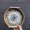 Mother-of-Pearl Inlaid Rattan Tray with Handles – Decorative Serving Tray for Food